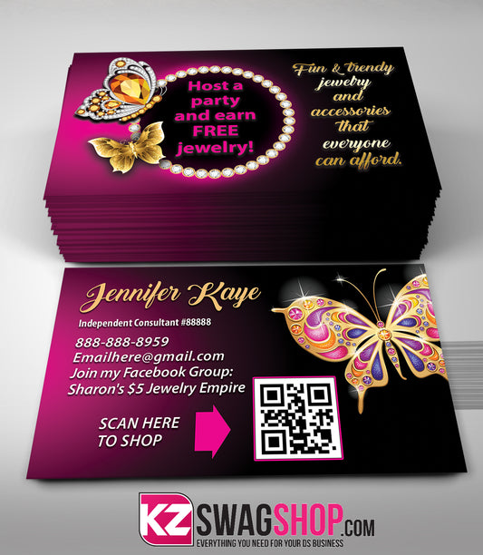 $8 Bling Jewelry Business Cards BEAUTIFLY style 3 QR CODE