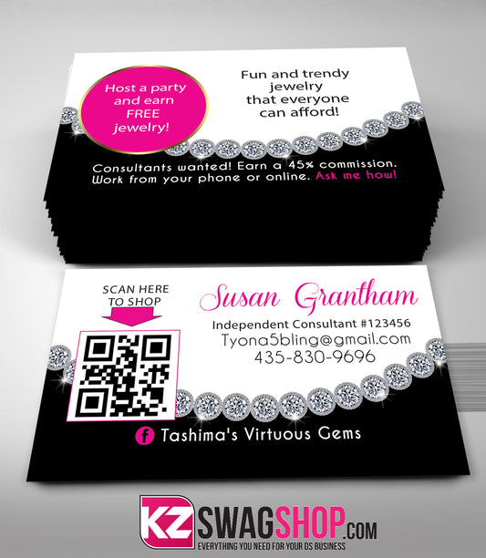 $8 Bling Jewelry Business Cards Style 52 with QR CODE