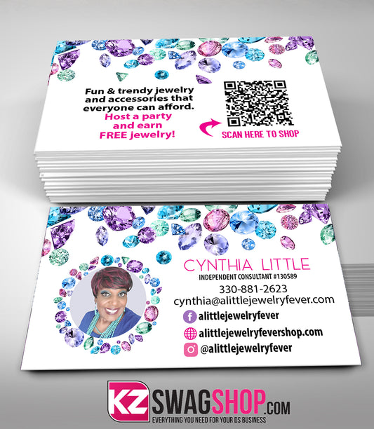 $8 Bling Jewelry Business Cards Style 40 with QR CODE- JEWELS