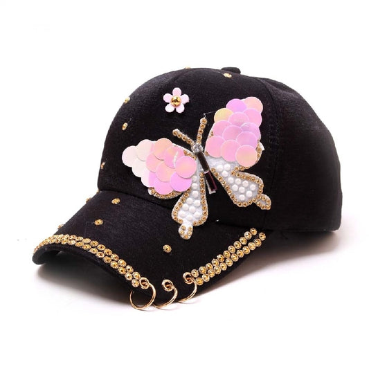 Bling Crystal Butterfly Hat Cotton Shiny Hats