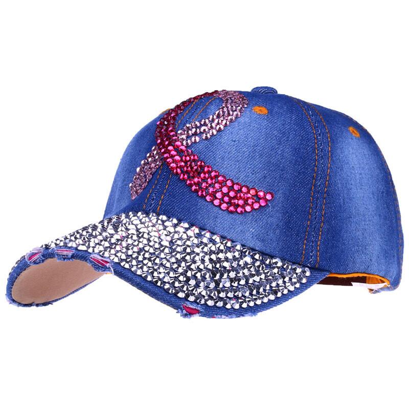 Cancer Awareness Pink Ribbon bling rhinestones hat