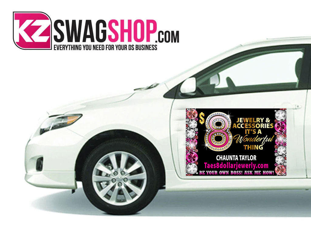 Set of 2 premium 18x12 vehicle magnets designed for professional mobile advertising. These durable 30 mil magnet-backed vinyl displays allow you to transform your vehicle into a marketing tool. Fully customizable with your contact information, these high-quality magnets travel with you, maximizing your brand visibility wherever you drive.